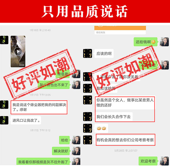含尘烟气是通过引风机的引力。把炉口的烟气通过管道及故风装置引到布袋除尘器里面,当含尘气体通过管路进入除尘器后,首先碰到进风口中问的斜開板,气流收到撞击,使转向进入友斗,同时气流速度迅速变慢,粉尘由于惯性及相互碰撞作用,大颗粒的直接落入灰斗。比较细小的粉尘在风机的引风作用下,分布到除尘器的各分室,并通过除尘布袋过滤,净化后的空气通过除尘布袋进入除尘器的清清室,并汇集到出风口排出。
